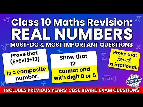Class 10 Maths Revision on Real Numbers with must-do and most important questions, including previous years’ CBSE Board exam questions.